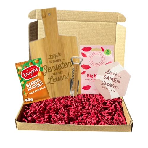 Wat zit er in deze liefdevolle borrelbox?