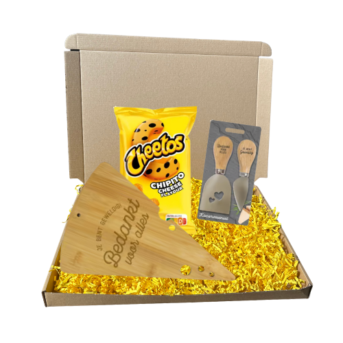 Glowbox Kaas & Snacks – Bedankt | Origineel Bedankcadeau met Kaasplankje & Kaasmesjes