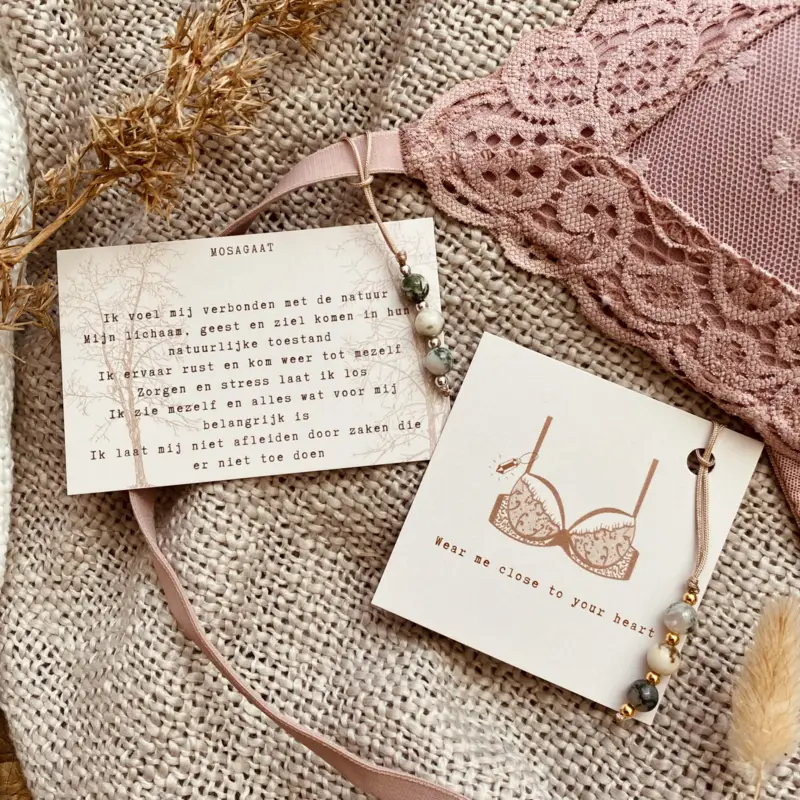 Wear me close to your heart! Hoe fijn om edelsteentjes op deze manier bij je te dragen. Veel vrouwen dragen een edelsteentje met zich mee in de BH, maar dat kan soms onhandig zijn. Deze hangertjes zijn daarom speciaal gemaakt om aan het bandje van je BH te hangen! Maar je kan het hangertje natuurlijk ook aan je sleutels, tas, rits, mobiel, of waar dan ook hangen.
